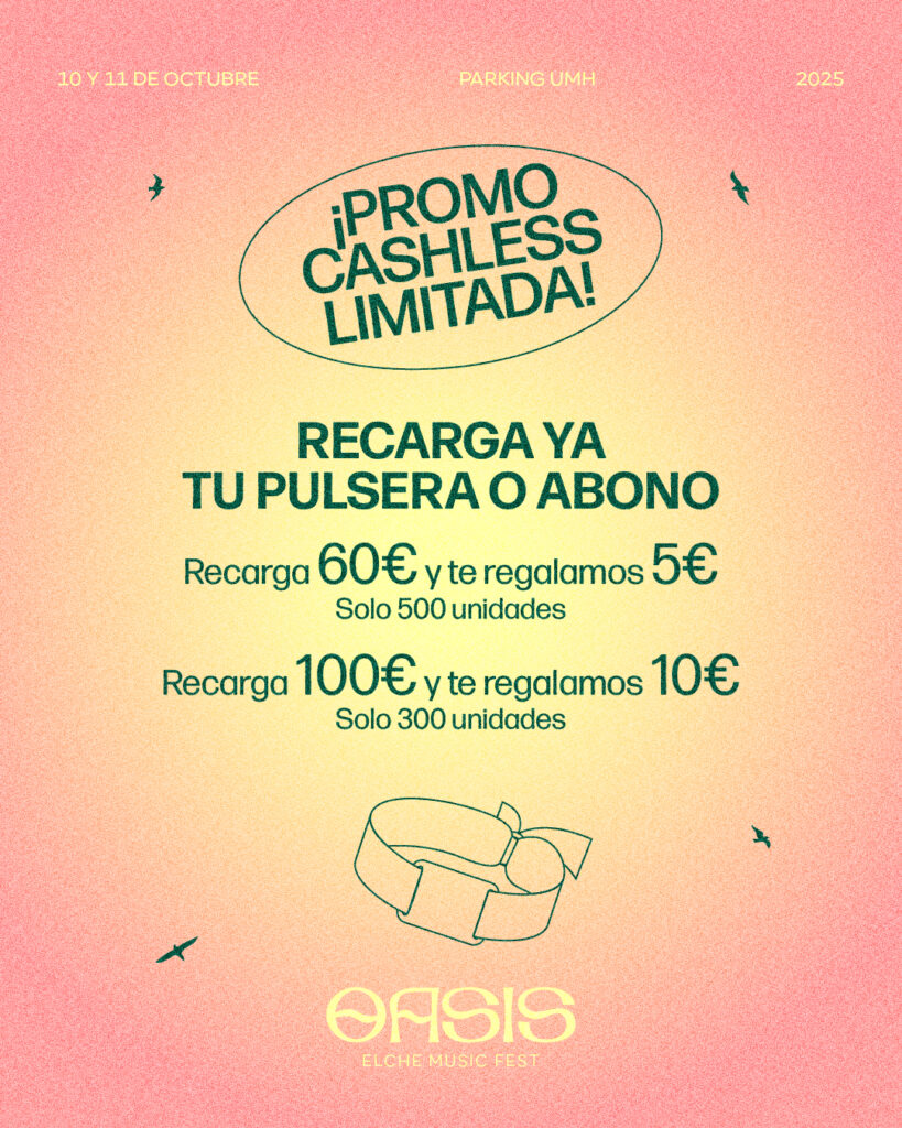 Oasis Elche Music Festival se vive en toda la ciudad. Con rutas gastronómicas, comercios tematizados y conciertos en plazas y parques, Elche se transforma durante toda la semana en un gran escenario urbano. Cultura, música y tradición se unen para celebrar una experiencia única que va mucho más allá de los conciertos.