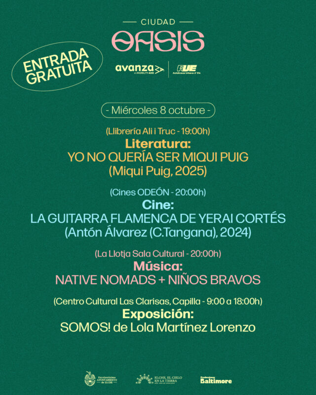 La Programación Cultural gratuita que tendrá Elche desde el sábado 4 de octubre hasta el domingo 12.